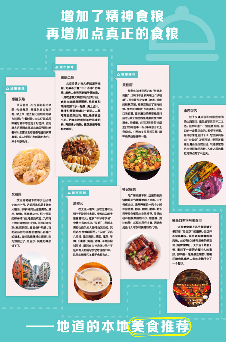 每条路线不仅标注景点与地标,更注重“可步行性”的细节:推荐中途歇脚的咖啡馆、本地小吃店,并穿插街区历史、建筑风格、民俗故事的延伸阅读框,如西关大屋的栊门铁窗花、喀什老城的巴扎文化等。