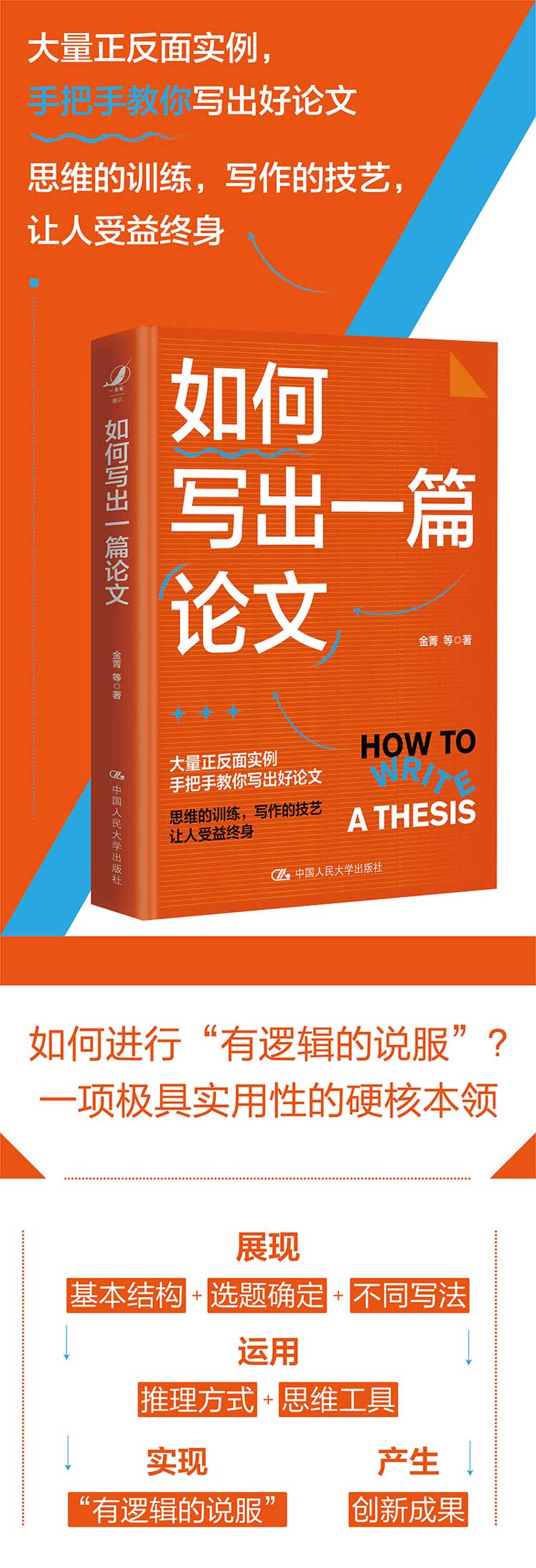 《如何写出一篇论文》是2025年初由中国人民大学出版社推出的一本“过程指导”式写作教材,作者团队以中央财经大学金菁教授为首,连同汪雄剑、裘骏峰、戴田甜、明洋、张晗雨五位长期讲授论文写作课的教师集体撰写。