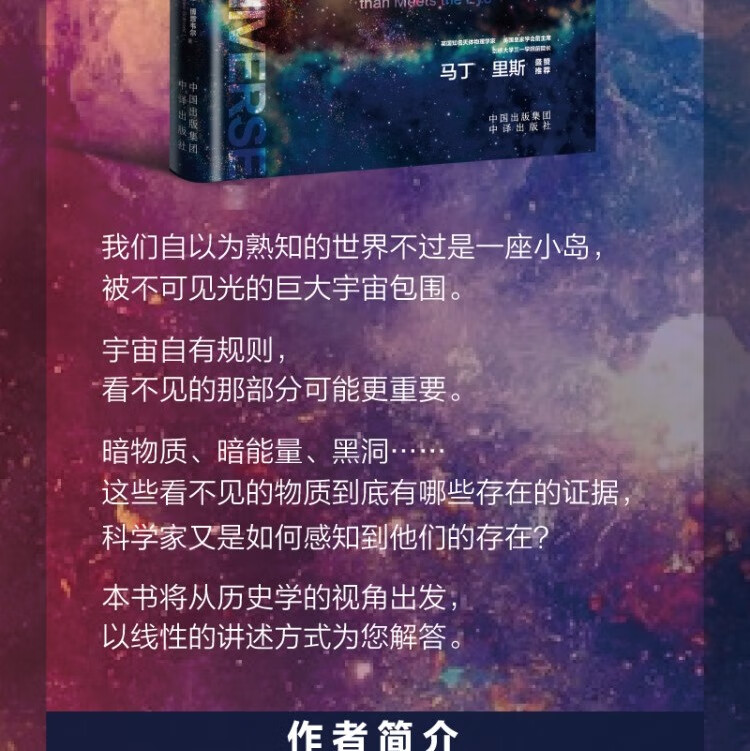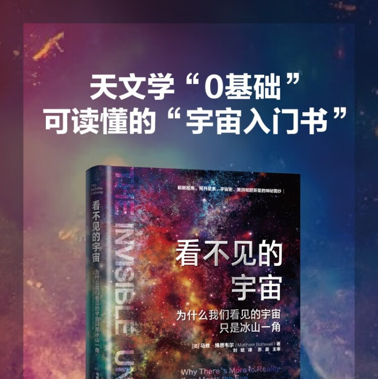 《看不见的宇宙:为什么我们看见的宇宙只是冰山一角》是一本由英国天文学家马修·博思韦尔博士撰写的科普作品。这本书的核心观点是:我们用肉眼或传统望远镜所能观测到的宇宙,仅占整个宇宙的1%,剩下的99%隐藏在不可见光、暗物质、暗能量、黑洞和引力波等“看不见”的领域中。作者用通俗的语言和层层推进的叙述,带领读者从熟悉的光出发,逐步进入这些“看不见”的世界,揭示它们如何塑造了我们所处的宇宙。
