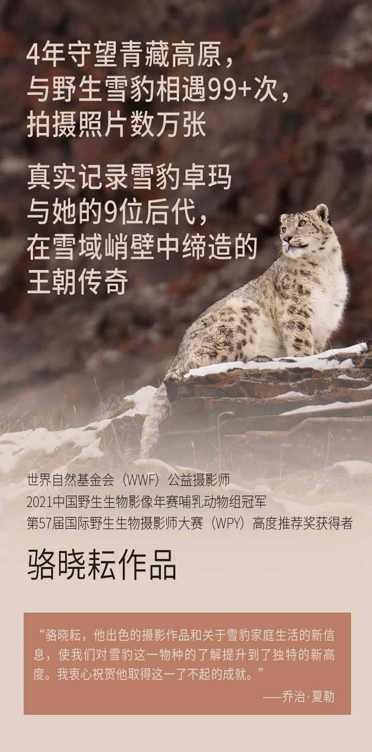 国际著名动物学家乔治·夏勒博士曾评价:"骆晓耘出色的照片和关于雪豹家庭生活的新画面使我们对雪豹物种的了解达到了一个独特的新的高度。"
