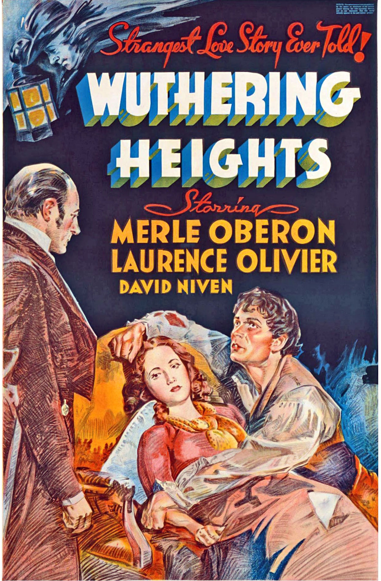 ▲电影《呼啸山庄》(1939),由威廉·惠勒导演,梅尔·奥勃朗、劳伦斯·奥利弗等主演。影片获第12届奥斯卡金像奖最佳影片(提名),并获得最佳摄影(黑白片)奖。